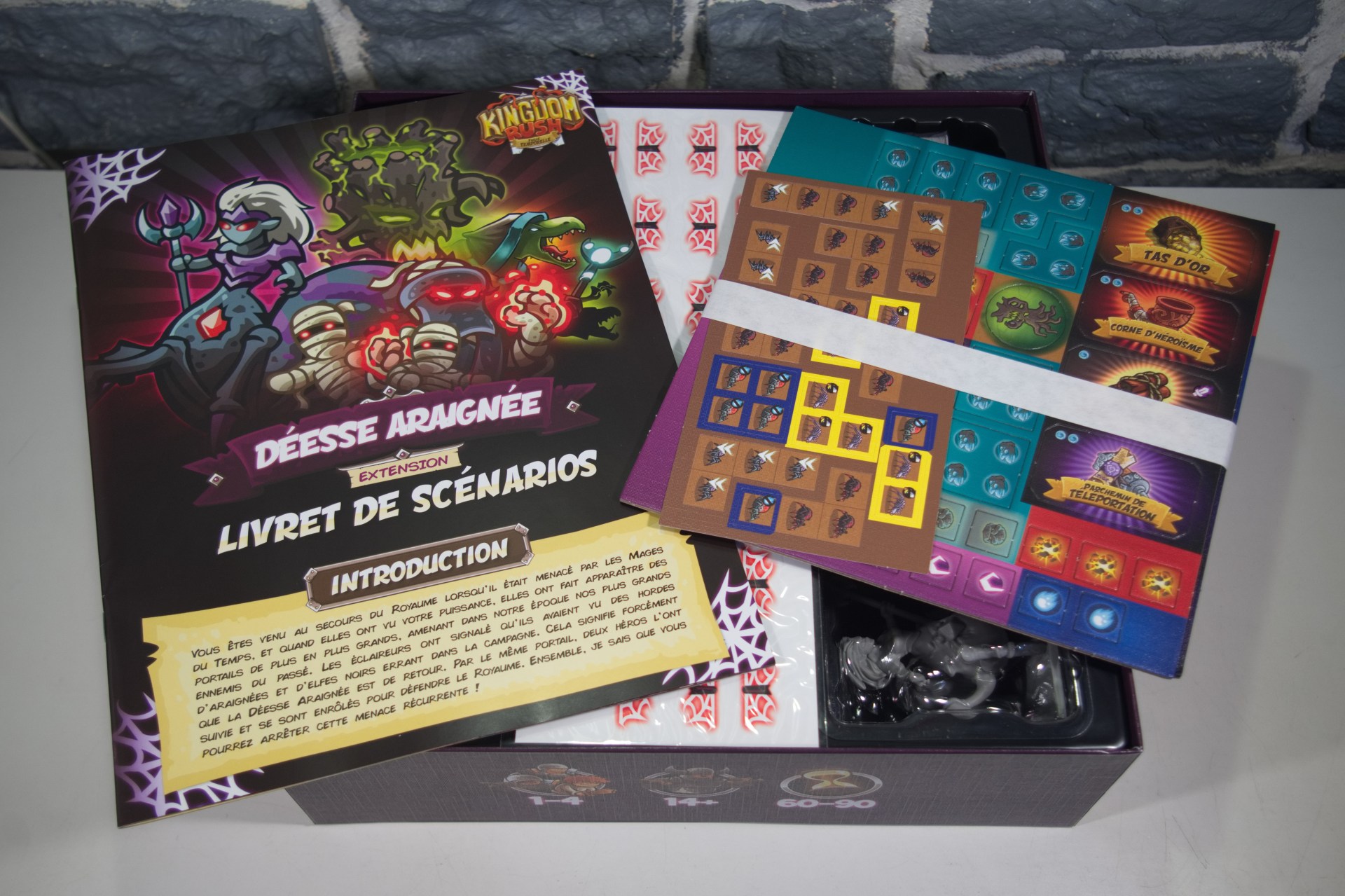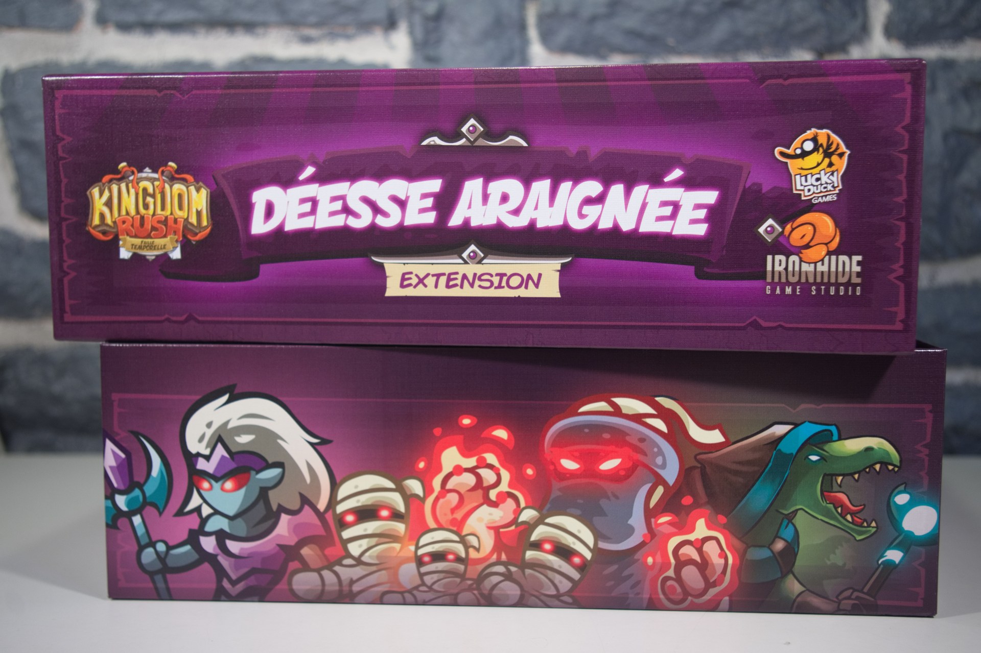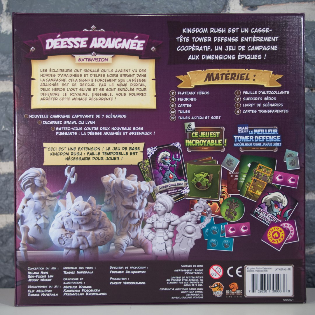 L'extension Spider Goddess contient tout le contenu qui a été débloqué pendant la campagne Kickstarter de Kingdom Rush: Rift in Time, y compris deux nouveaux personnages, deux nouveaux boss, plusieurs tuiles et decks, ainsi que quatre nouveaux scénarios. Il contient également des cartes pour rendre les nouveaux ennemis compatibles avec le mode Portal Horde.