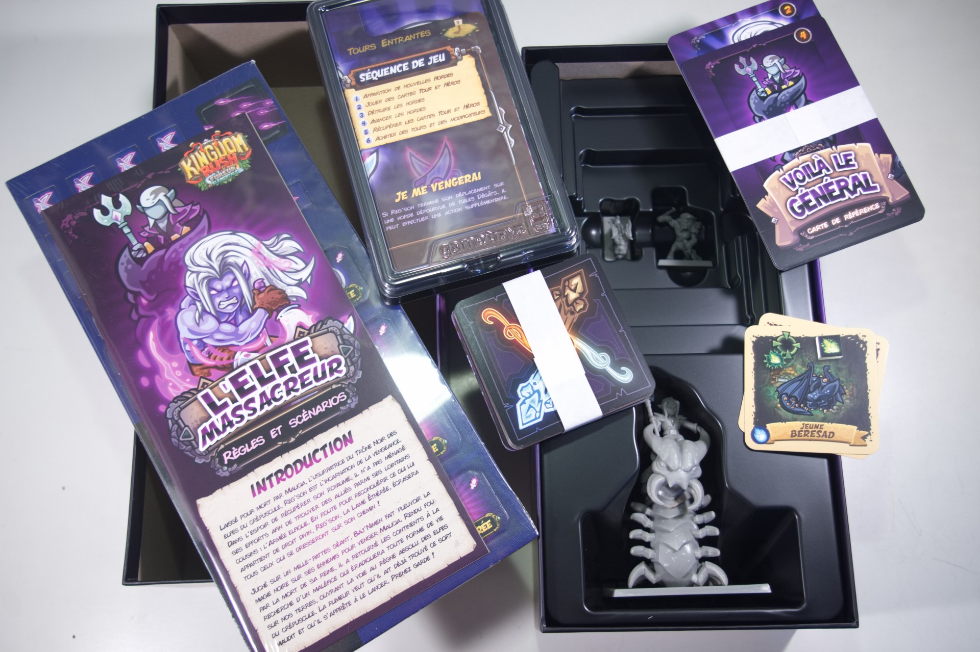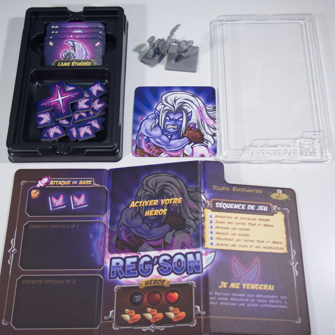 Cherchez à vous venger avec le nouveau héros Reg’son en chassant le redoutable chef Baj’nimen le Détestable dans quatre nouveaux scénarios ! Dans cette extension, vous trouverez le nouveau héros Reg’son et le nouveau boss Baj’nimen le Détestable, tous deux accompagnés de superbes figurines en plastique. Baj’nimen mesure 80 mm de haut et chevauche son mille-pattes géant ! À travers quatre scénarios, vous découvrirez de nouveaux mécanismes, dont les Mods de la Tour du dragon, un nouveau Miniboss, la Brute du crépuscule, et l’effroyable Pluie de magie noire de Baj’nimen !