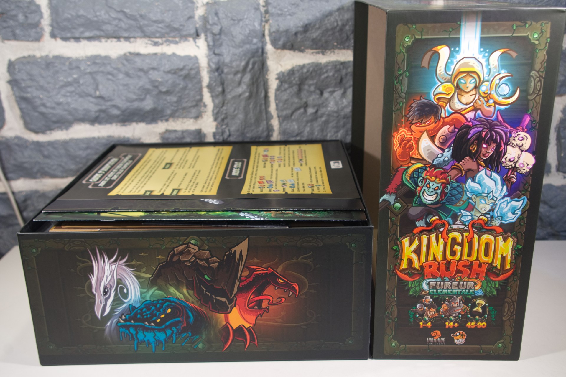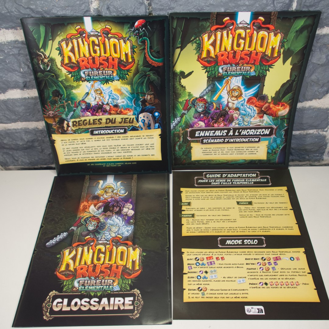 Kingdom Rush : Fureur élémentale est un jeu autonome coopératif pour 1 à 4 joueurs qui offre l’expérience ultime de Tower Defense en jeu de plateau ! Les joueurs incarnent des héros asymétriques qui défendent leur royaume contre des vagues de hordes de monstres. Ils jouent des tours pour attaquer les hordes, en utilisant des tuiles polyominos pour couvrir les monstres jusqu’à ce qu’ils soient tous couverts. En détruisant les monstres, les joueurs gagnent des cristaux et de l’or qu’ils peuvent dépenser pour acheter de nouvelles tours ou des modifications de tours afin d’améliorer et de personnaliser leurs tours existantes. Les monstres sont dotés d’une série de capacités spéciales que les joueurs devront anticiper. Les héros seront également confrontés à des événements qui changeront la donne et à des perturbations élémentaires telles que des volcans et des cyclones ! Le jeu est basé sur des scénarios et peut être joué comme des scénarios individuels rejouables ou comme une campagne en constante évolution menant à de grands combats de boss, des défis pour les héros, et plus encore. Kingdom Rush propose des règles simples à apprendre et un haut niveau de tactique pour les joueurs expérimentés.