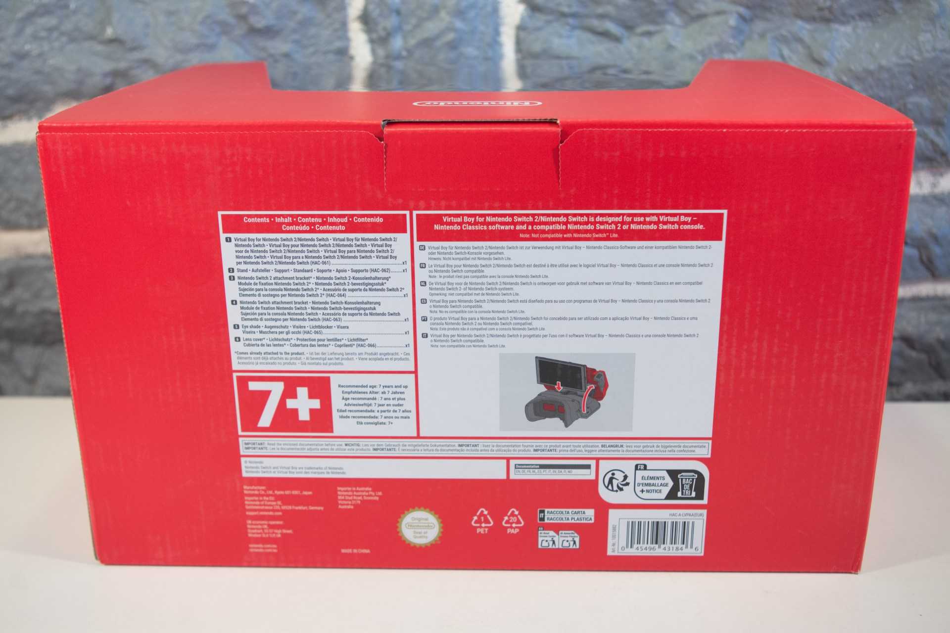 L'âge recommandé pour l'utilisation du logiciel et de ce produit est de 7 ans et plus. Veuillez noter que Virtual Boy – Nintendo Classics a été classé PEGI 7 (violence implicite, violence légère, peur).