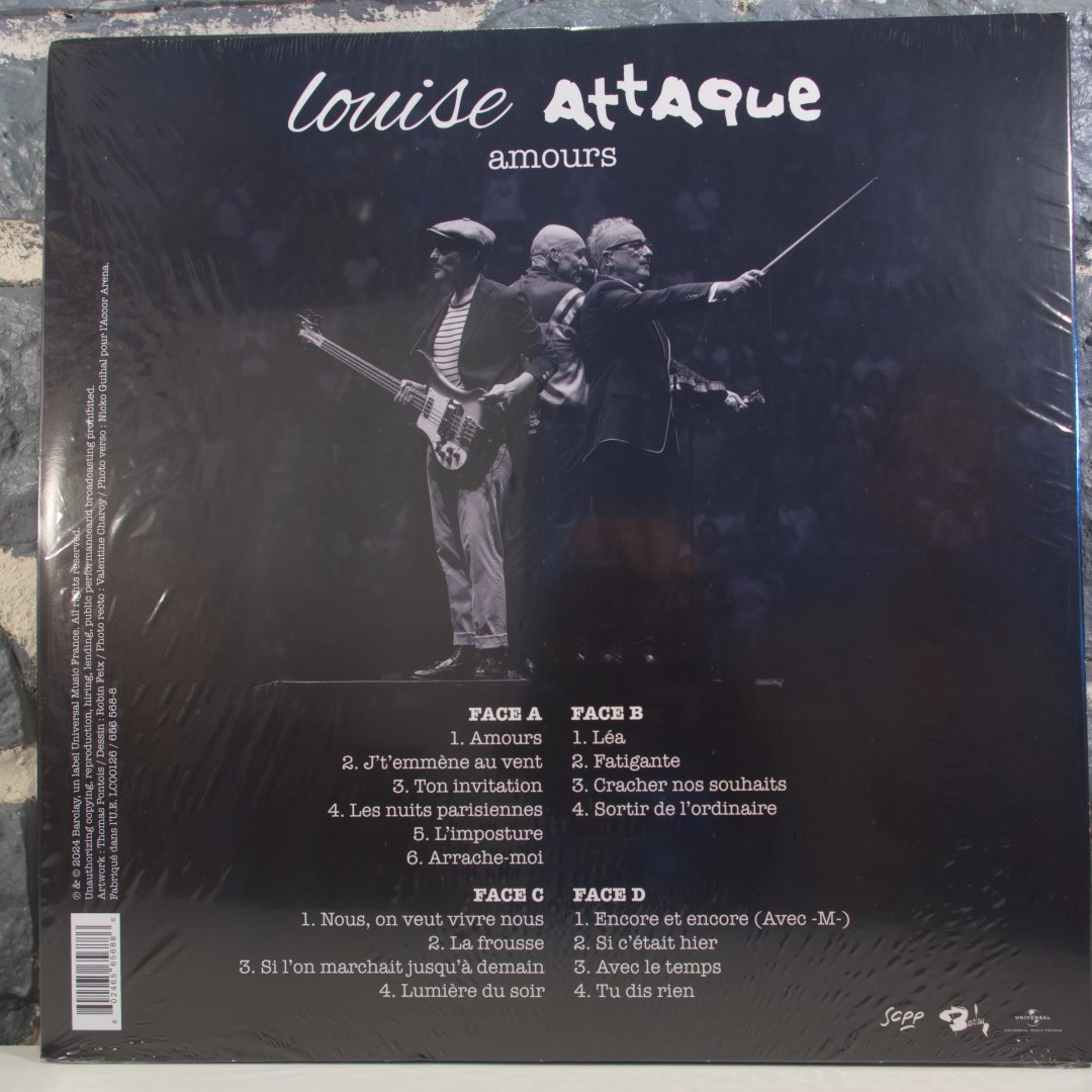 Découvrez le tout premier album LIVE des Louise Attaque enregistré en septembre 2023 lors de leur dernière tournée triomphale. Un mélange de grands classiques de leur répertoire, inclus un duo inédit avec Matthieu Chedid pour une reprise électrique de « Encore et Encore » de Francis Cabrel. 18 titres puissants où toute l’énergie scénique du trio, devenu iconique, explose dans l’ambiance survoltée de l’Accor Arena de Paris.