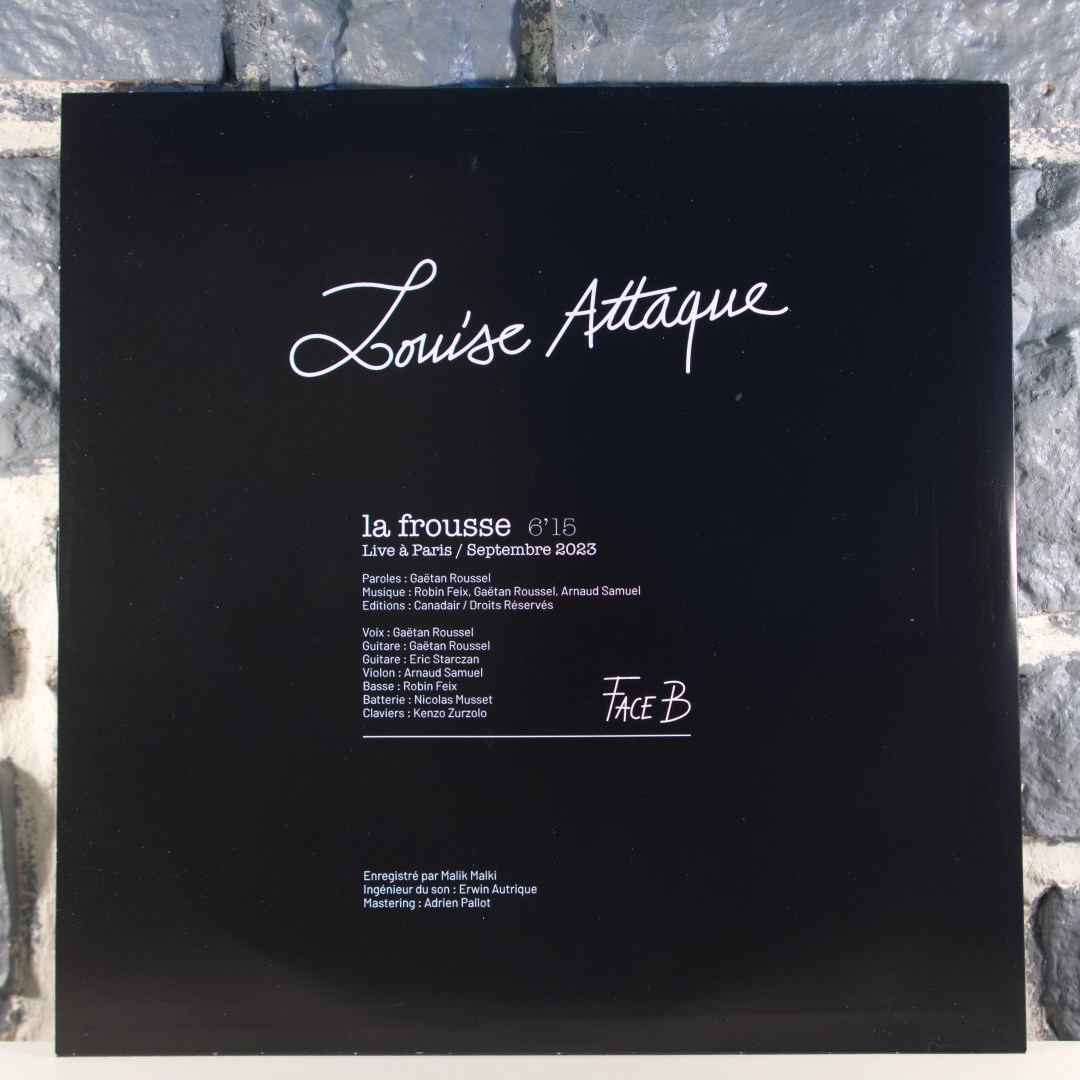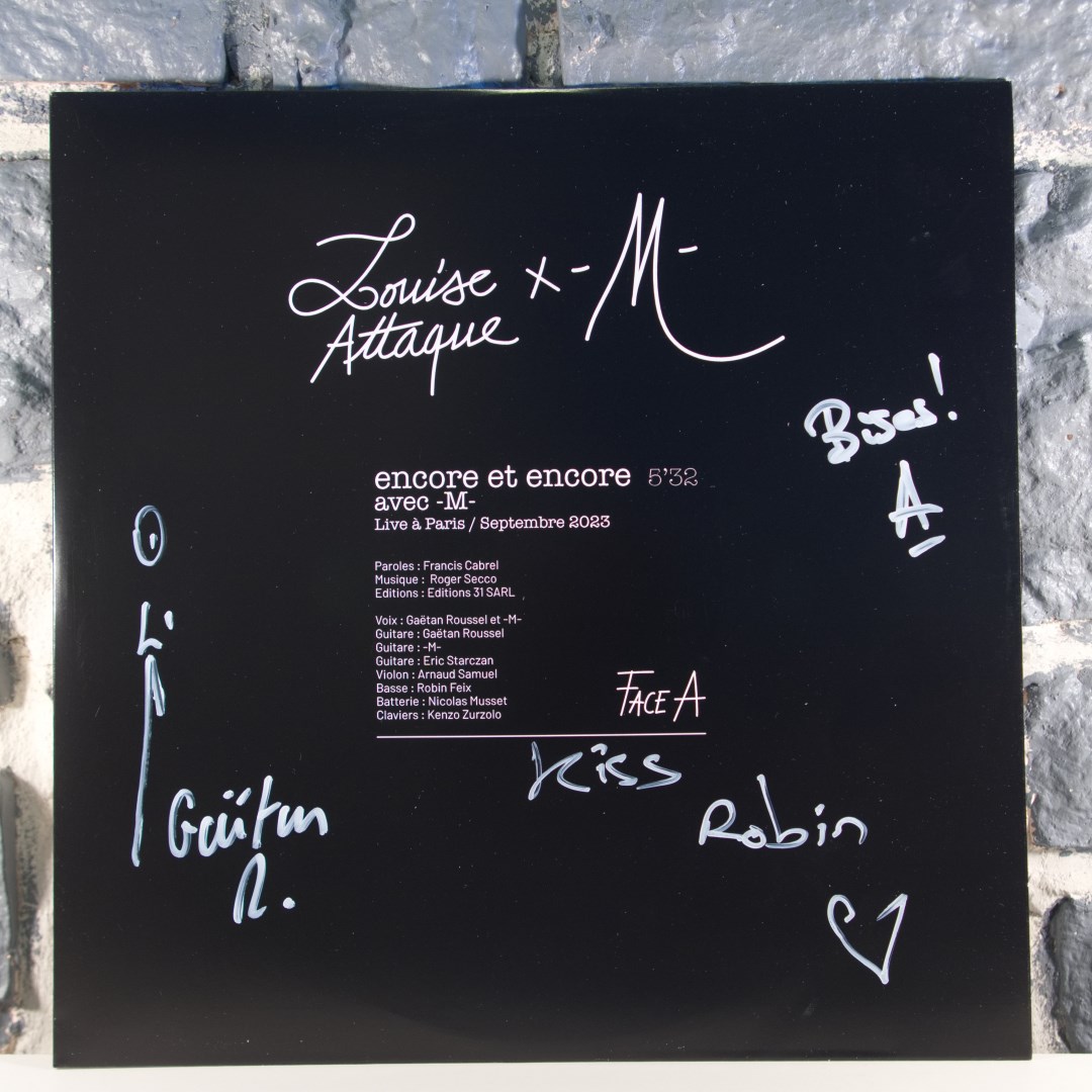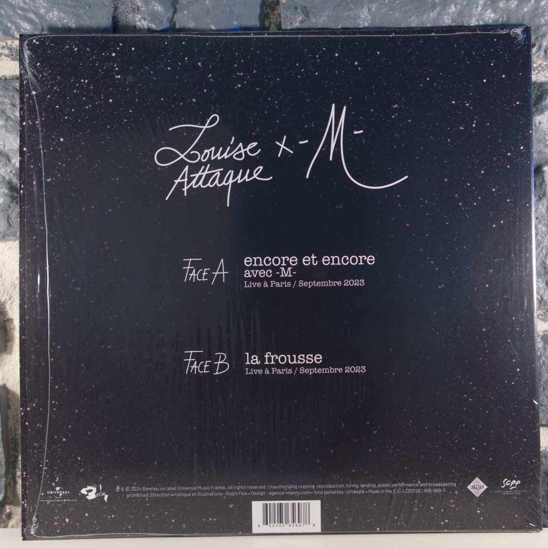 A l'occasion de la sortie du tout premier album LIVE des Louise Attaque enregistré en septembre 2023 lors de leur dernière tournée triomphale, découvrez le 45 tours 10 pouces collector incluant en Face A le duo inédit entre le groupe et -M- pour une reprise électrique de « Encore et Encore » de Francis Cabrel. En Face B le titre La Frousse.