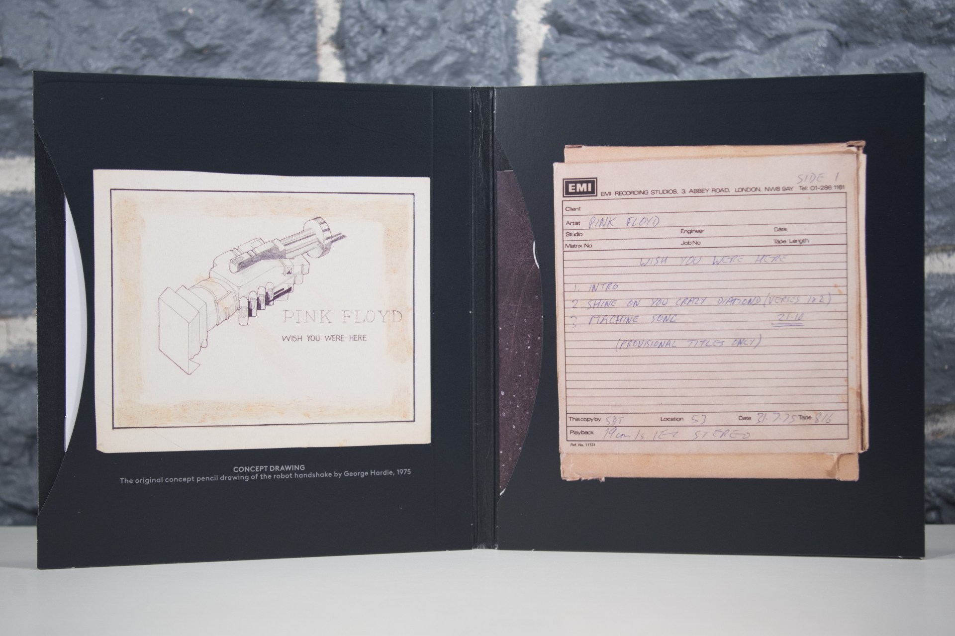 The record’s themes of absence, isolation, transience, and comment on the insincerity of the music business are embodied in the iconic album artwork. The visual puns developed by Storm Thorgerson and Aubrey ‘Po’ Powell at Hipgnosis remain instantly recognisable visual statements today.
